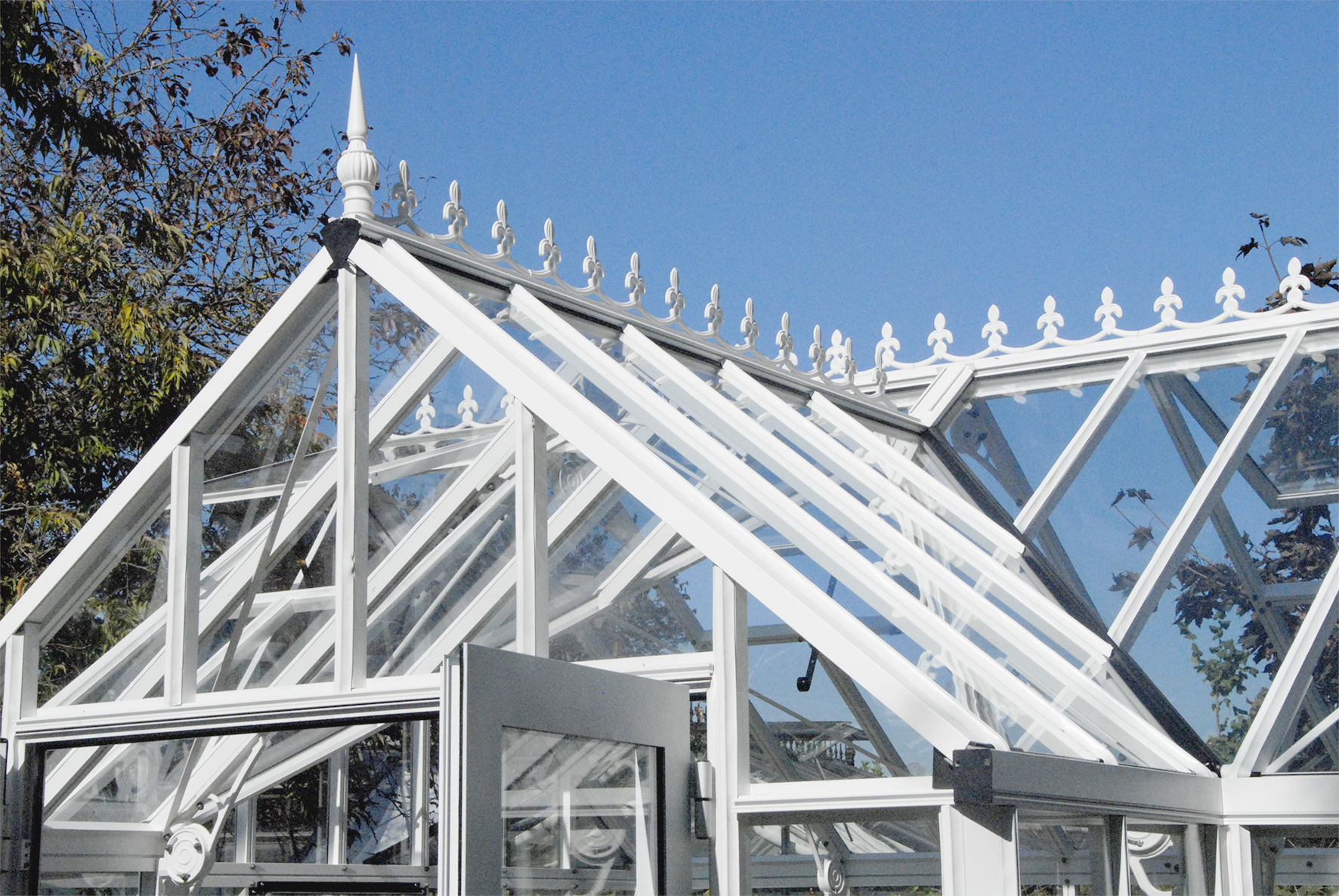 Et fantastisk og romslig T-drivhus. Modellen kan stå på ringmur 20cm /40cm/60cm, hvor murkanten fungerer som nedre del av veggen. En meget dekorativ løsning som gir et ekslusivt preg. Drivhuset er av høy kvalitet har mange valgmuligheter for utstyrsvalg. Drivhuset er vakkert og passer inn i de fleste hager. Kommer i ulike størrelser. Drivhuset har ekstra høye vegger (se mål og størrelser), hvilket passer for høye personer eller for dem som liker å ha ekstra takhøyde. Fint også der man ønsker å få plass til små trær eller høye busker. Dette er en romslig modell som lar deg kombinere alt i fra en liten sitteplass til en stor sitteplass, samt drivhus for vekster. Her kan du boltre deg med plantebord, hyller og kasser på bakkeplan. Modellene kan tilpasses med ekstrautstyr. Spiret og takdekoren kan unnlates, monteteres dersom dette er ønskelig.