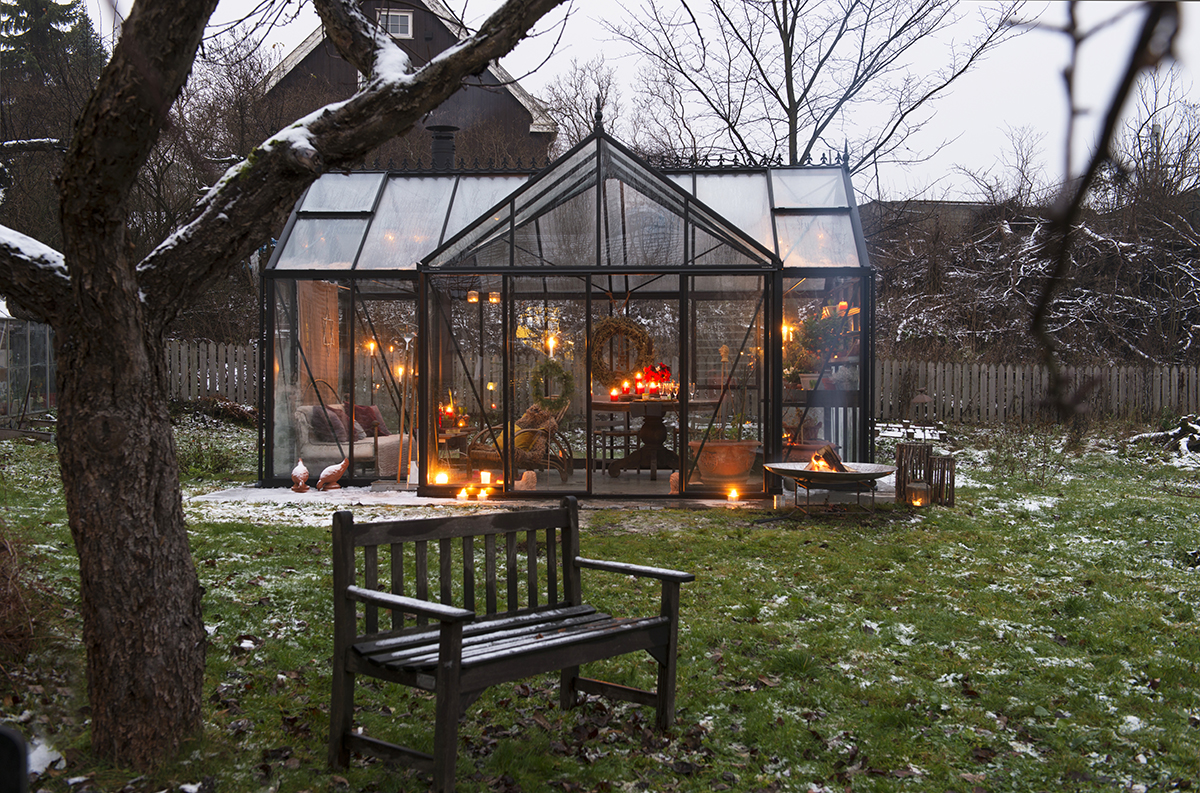 Et fantastisk og romslig T-drivhus. Drivhuset er av høy kvalitet har mange valgmuligheter for utstyrsvalg.  Drivhuset er vakkert og passer inn i de fleste hager. Kommer i ulike  størrelser. Drivhuset har ekstra høye vegger (se mål og størrelser), hvilket passer for høye personer eller for dem som liker å ha ekstra takhøyde. Fint også der man ønsker å få plass til små trær eller høye busker. Dette er en romslig modell som lar deg kombinere alt i fra en liten sitteplass til en stor sitteplass, samt drivhus for vekster. Her kan du boltre deg med plantebord, hyller og kasser på bakkeplan.  Modellene kan tilpasses med ekstrautstyr. Spiret og takdekoren kan unnlates monteteres dersom dette er ønskelig.