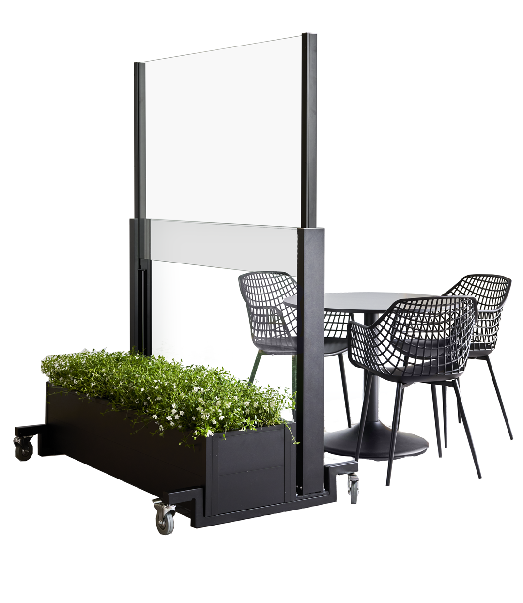 Hev -senk rekkverk er perfekt for terrasser, uteserveringer, balkonger og som fleksibel romdeler.