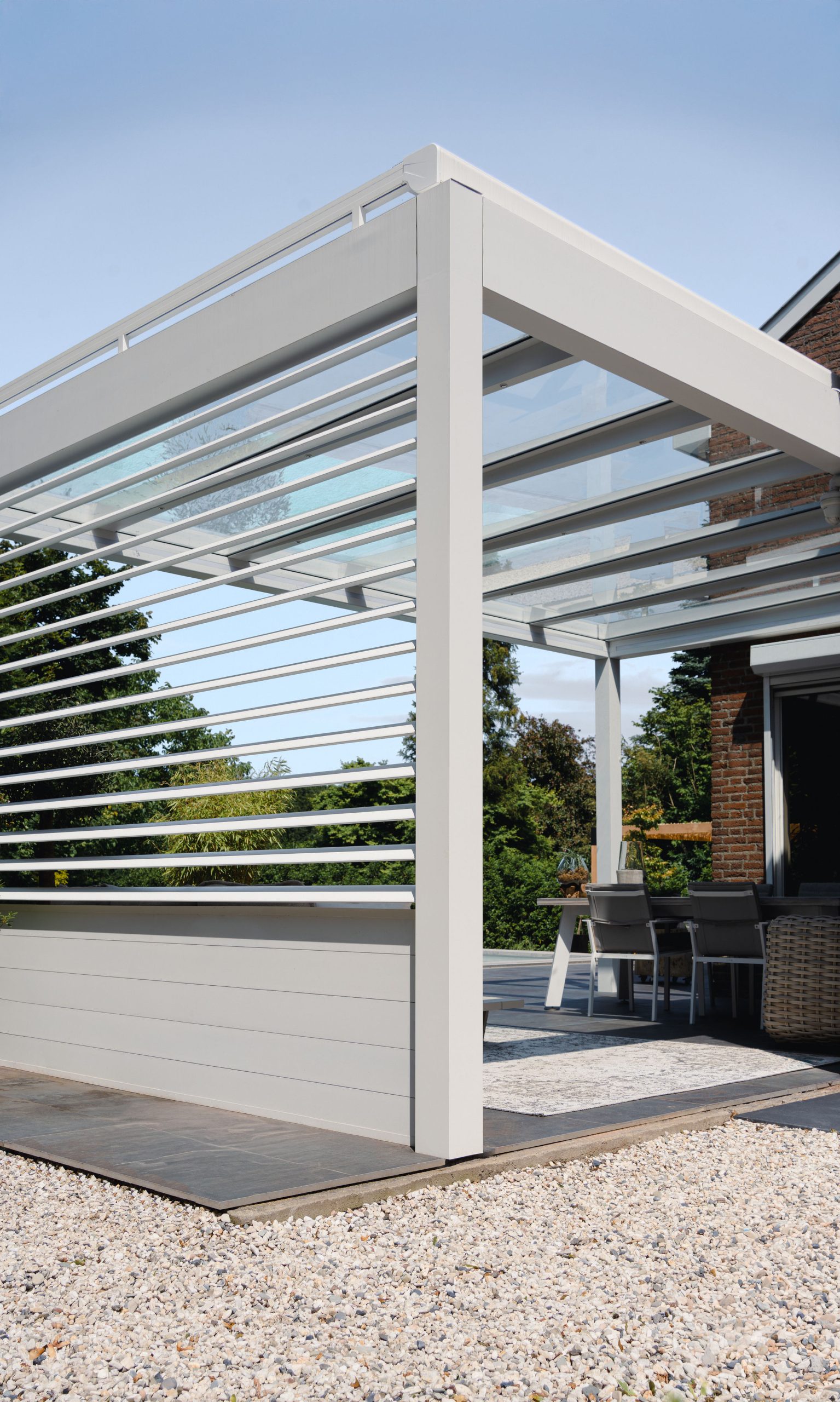 Passer til hus, leiligheter, restauranter, barer mm De rammeløse profilene maksimerer utsyn og åpning. Dette er vår mest åpne variant hvor all bæring ligger i den kraftige tak- og søylekonstruksjonen.